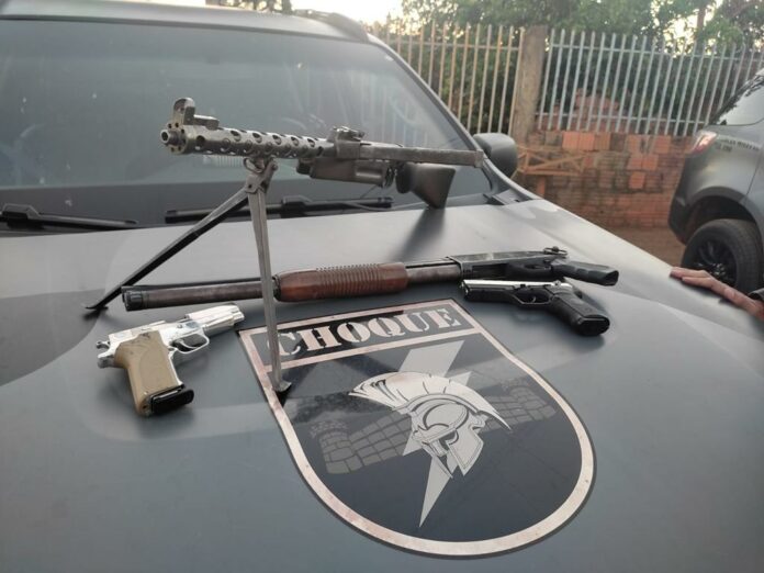 Na residência foram encontradas armas e munições. De baixo da cama enrola em um lençol estavam uma submetralhadora modelo ZK 383, calibre 9 mm, acompanhado de um carregador; uma escopeta calibre 12 e uma pistola 9mm com carregador, e ainda a arma que José usava no momento da abordagem, identificada como pistola calibre 9mm contendo sete munições intactas.