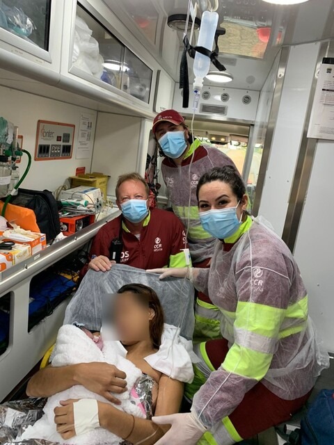 Mãe e filha junto da equipe resgate após o parto (Foto: CCRMSVia)