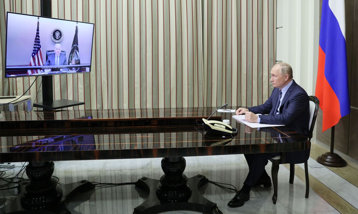 O presidente dos Estados Unidos, Joe Biden, e o presidente da Rússia, Vladimir Putin, tiveram uma conversa virtual de duas horas sobre a Ucrânia e outras disputas, nesta terça-feira (7), em meio aos temores ocidentais de que a Rússia esteja prestes a invadir sua vizinha do sul.