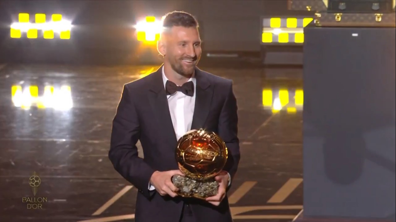 O troféu foi entregue ao argentino pelo veterano David Beckham, que também o dono do Inter Miami, clube dos Estados Unidos em que Messi joga atualmente. A cerimônia foi realizada em Paris, França.