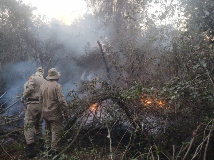 Equipes do Corpo de Bombeiros Militares combateram diversos focos de incêndio na região de Porto Morrinho, distante 70 km da área urbana de Corumbá.
