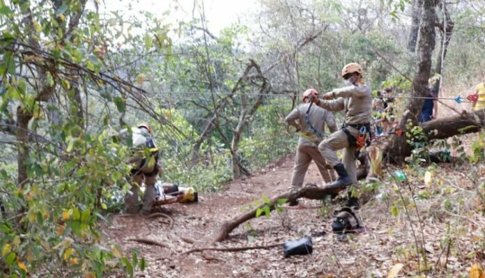 Bombeiros socorrem banhista com traumatismo craniano após saltar da cachoeira do Ceuzinho