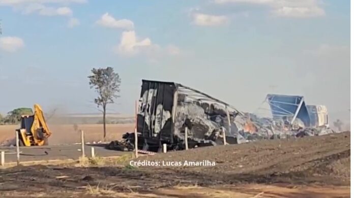 O acidente gerou grande movimentação de veículos e assustou quem passava pelo local. Não houve registro de feridos graves, e o Corpo de Bombeiros permanece no local para o controle completo do incêndio.