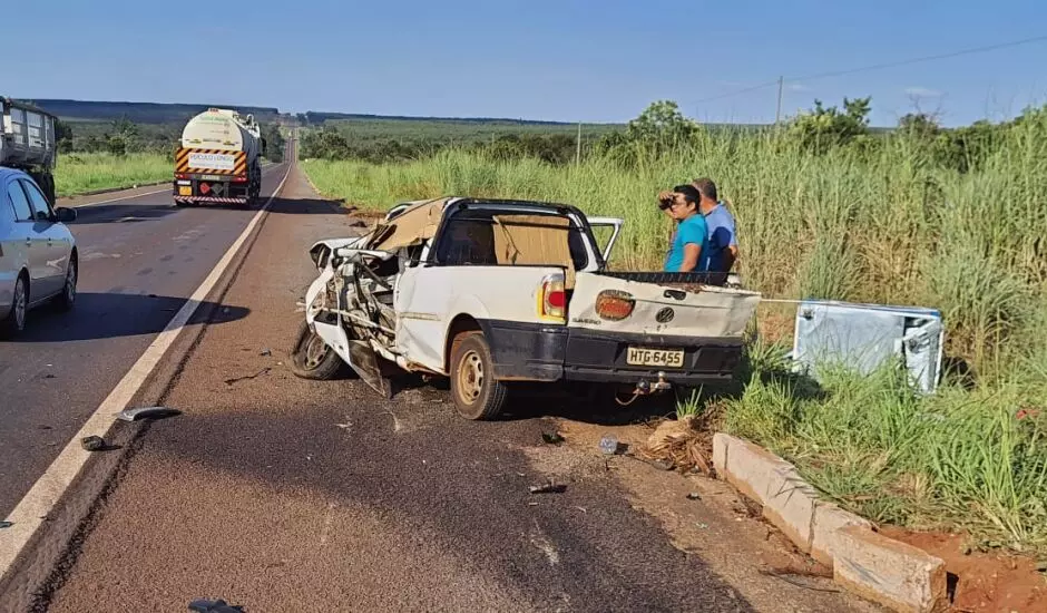 A Saveiro, com placas de Campo Grande, seguia no sentido à Água Clara. Não há informações sobre as causas do acidente. O veículo ficou no acostamento, com sua frente totalmente destruída.