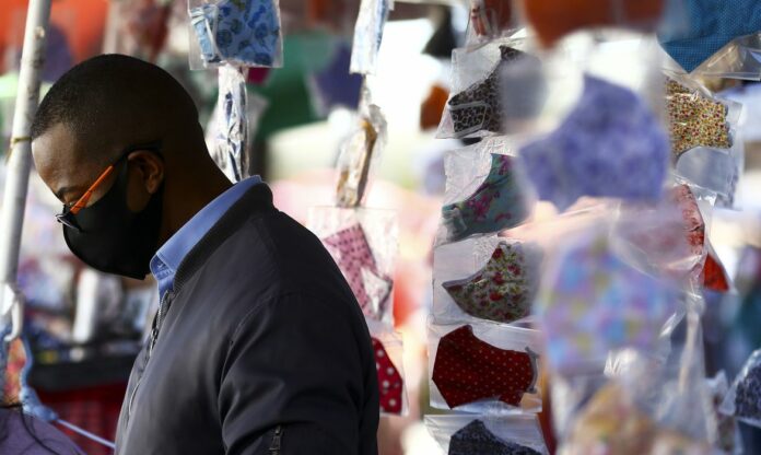 A recomendação da OMS é que as máscaras de pano tenham três camadas de tecido: a camada exterior deve ser de material resistente à água (polipropileno e/ou poliéster); a do meio, de material sintético ou algodão, para agir como filtro; e a interior, de material que absorva a água, como o algodão.