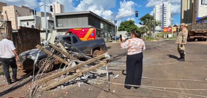 A queda de quatro postes de energia elétrica e iluminação por conta uma caçamba levantada de um caminhão deixou dois veículos danificados e um motorista, de 65 anos, preso nos destroços em Campo Grande.