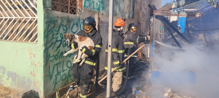 Um cachorro foi retirado pelos bombeiros e não apresentava queimaduras. Apesar do susto, ninguém se feriu.