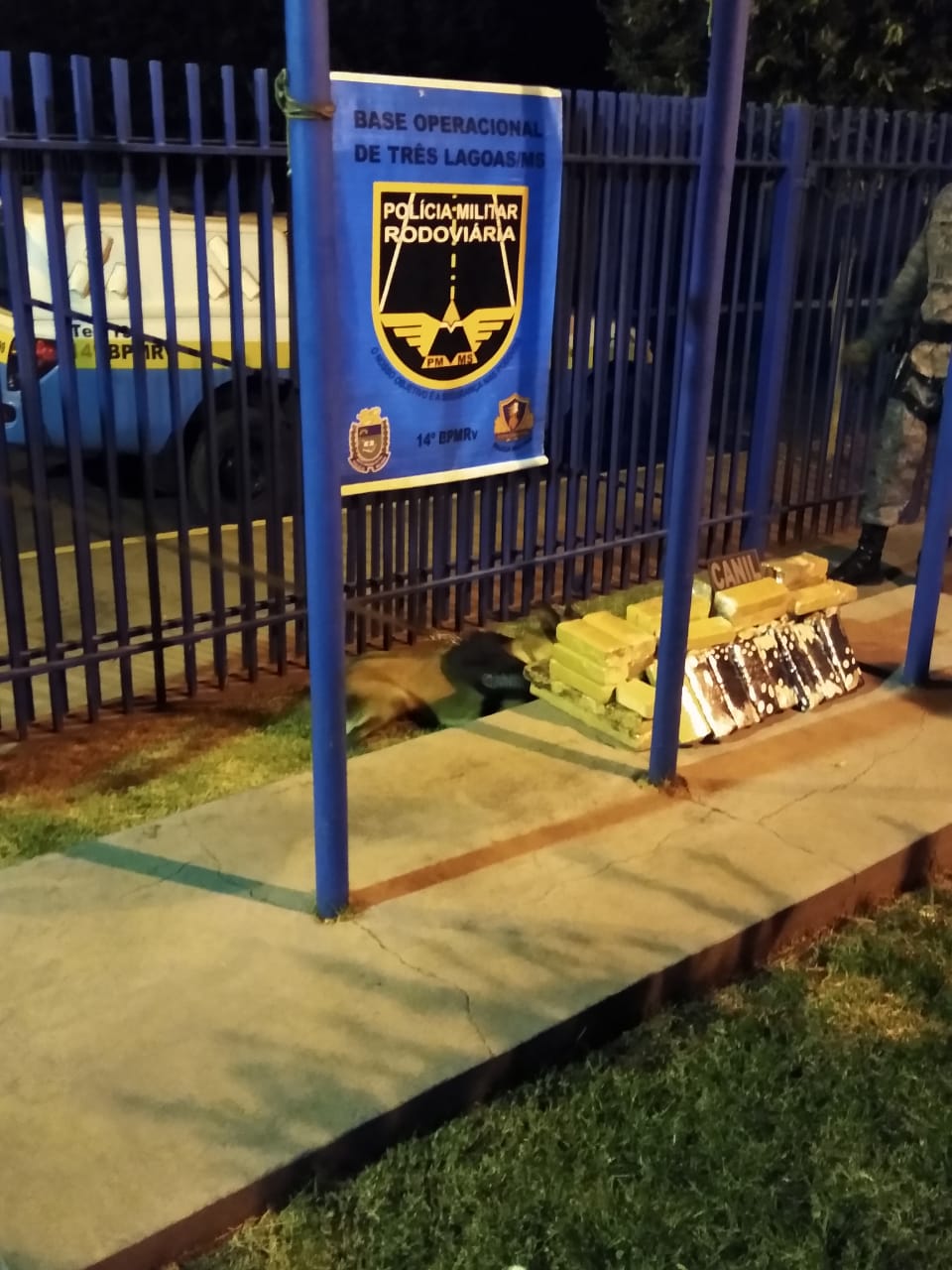 Momento em que a equipe da PMR deu ordem de parada a um segundo um veículo, um VW/Gol, com placas de Campo Grande – MS. O condutor, um homem de 36 anos, também estava visivelmente incomodado com a abordagem, entrando em diversas contradições. Em vistoria ao veículo os cães farejadores indicaram a presença de entorpecentes em compartimento oculto, onde obtiveram êxito em localizar 61 tabletes de maconha.