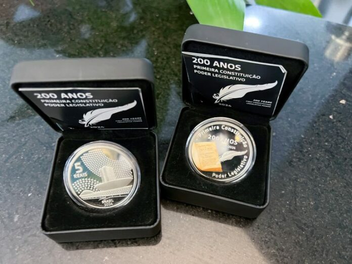 A Câmara dos Deputados e o Banco Central lançaram nesta quinta-feira (11) a moeda comemorativa dos 200 anos da primeira Constituição do Brasil (1824), destinada a colecionadores.
