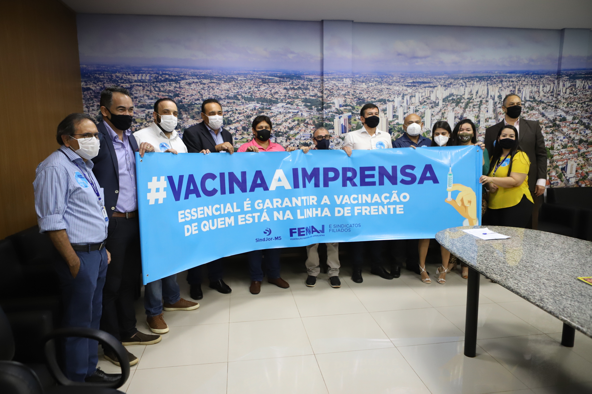 Em ato realizado na manhã desta sexta-feira (25), juntamente com o Sindjor-MS (Sindicato dos Jornalistas de Mato Grosso do Sul), a Câmara Municipal de Campo Grande reforçou apoio à vacinação prioritária dos profissionais de imprensa, que estão trabalhando diariamente nesta pandemia de Covid-19 para levar informações à população, combatendo fake news e defendendo a democracia.