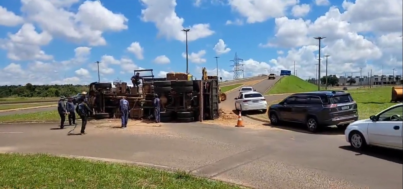 O acidente aconteceu na rotatória de acesso ao viaduto que passa sobre a rodovia federal BR-163, na saída para Três Lagoas.