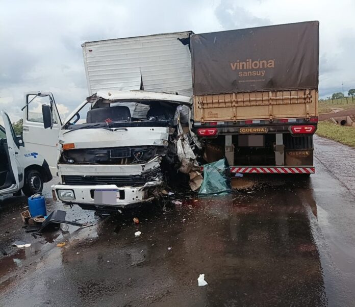 A cabine de um caminhão-baú ficou completamente destruída na tarde dessa quinta-feira (19), após bater contra uma carreta na rodovia estadual MS-306, no trecho entre as cidades de Cassilândia e Chapadão do Sul.
