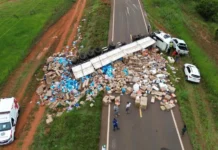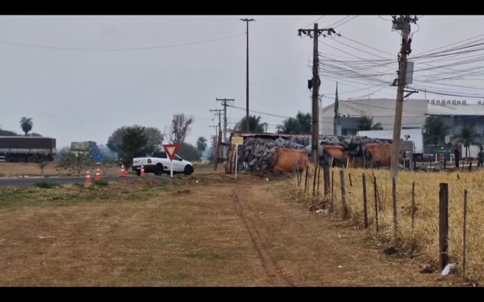 O sinistro ocorreu na rotatória de acesso à Sidrolândia, no trecho da rodovia federal BR-060. O veículo transportava uma carga de 25 toneladas do produto.