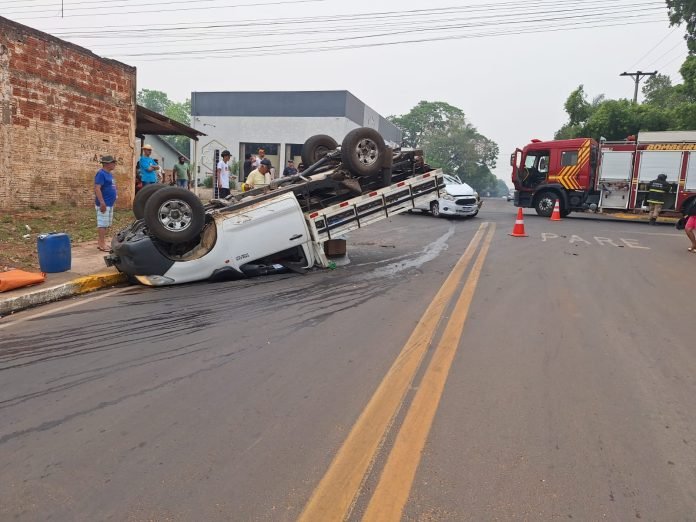 Caminhonete capota após ser atingida por veículo em cruzamento de Aquidauna