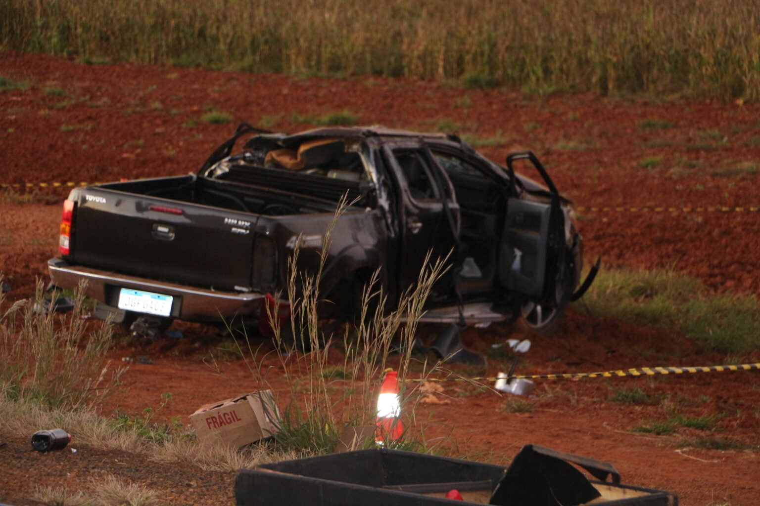 Por volta das 04h30, a caminhonete, que estava acoplada num semirreboque, acabou saíndo da pista e capotou várias vezes até parar no meio da vegetação às margens da rodovia.