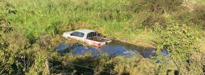 Uma caminhonete foi encontrada na manhã dessa quinta-feira (20) meio de uma vegetação às margens da rodovia federal BR-262, na região do bairro Maria Coelho, em Corumbá.
