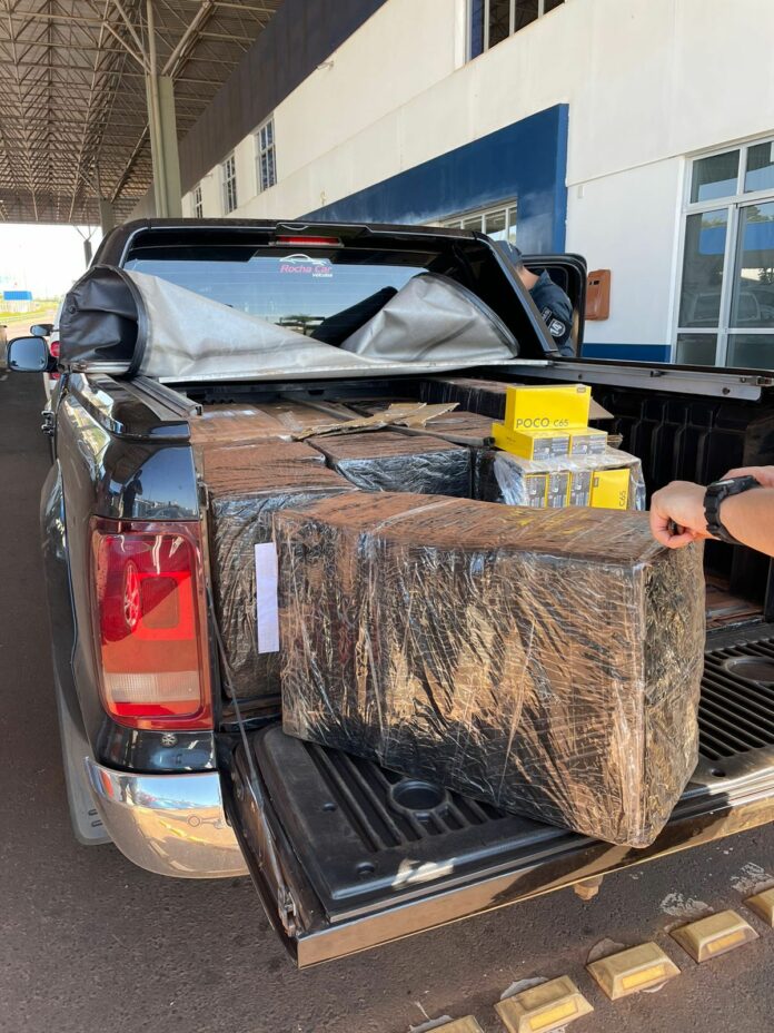 Houve a perseguição por alguns quilômetros até que, logo em seguida, o suspeito parou e se entregou. Na abordagem ele confessou estar com contrabando.