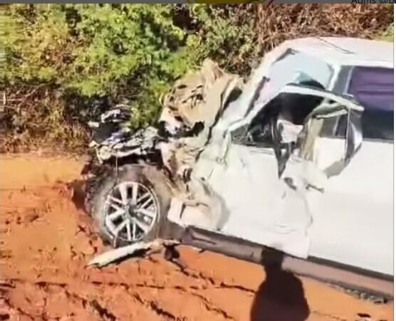 Uma caminhonete, modelo Toyota Hilux, ficou com a parte frontal completamente destruída na manhã dessa quinta-feira (25) ao se chocar contra uma árvore às margens da rodovia federal BR-262, no trecho próximo da malha férrea.