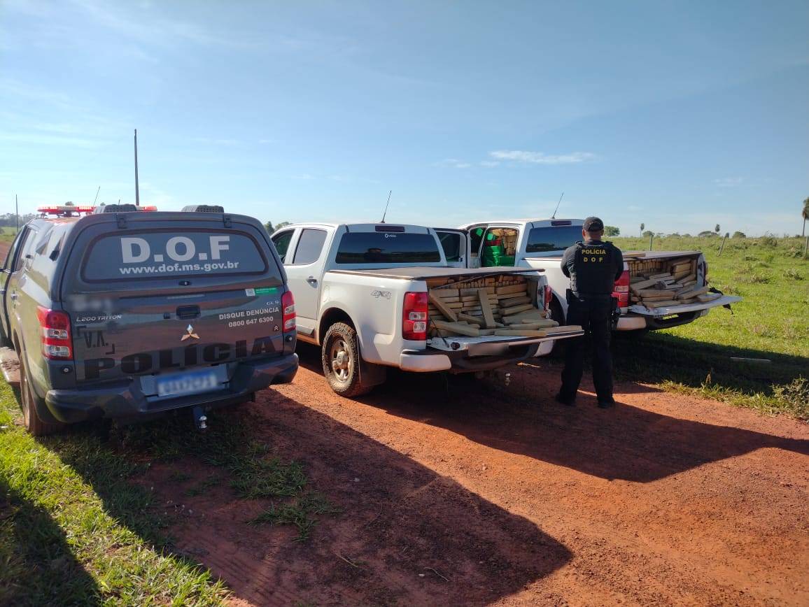 O Departamento de Operações de Fronteira (DOF) apreendeu ontem (13), duas camionetes carregadas com 3.483 quilos de maconha distribuídos em grande quantidade de volumes prensados.