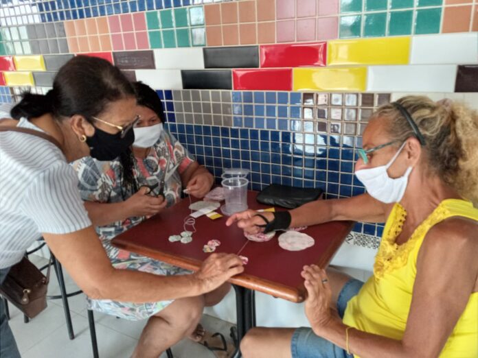 Em Campo Grande (MS), cerca de 30 mulheres acolhidas pela Clínica da Alma (parceira da FSF, pelo projeto Fraternidade na Rua) recebem aulas semanais de fuxico, coordenadas pelas professoras voluntárias Soraia Monteiro e Gilmair Arraes e Claudenicelena Oliveira, ambas da Capital Sul-mato-grossense.