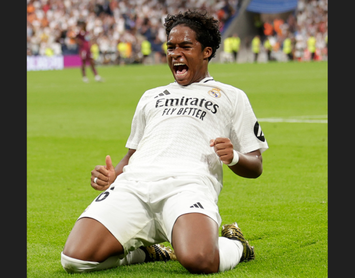 Endrick tem estrela e no Real Madrid não é diferente. Neste domingo (25), no Santiago Bernabéu, pela segunda rodada do Campeonato Espanhol, o atacante começou no banco e só foi entrar aos 41 do segundo tempo, fazendo a sua estreia na competição. Mas na chance que teve, no último lance do jogo, recebeu de Brahim Díaz e fez um belo gol, fechando o placar em 3 a 0. Além de Endrick marcaram para o Real Valverde e Brahim Díaz, todos no segundo tempo