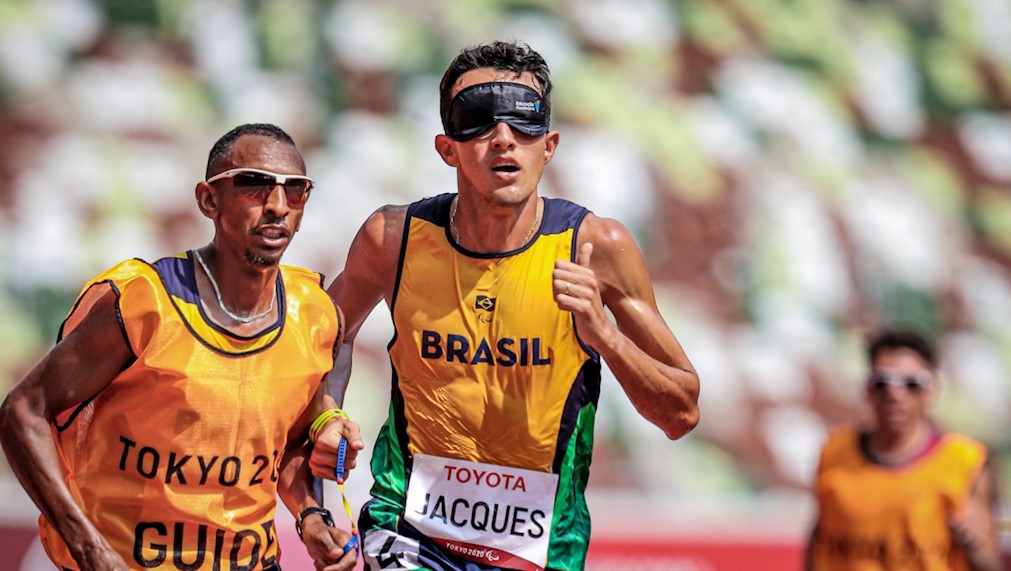 É ouro! Yeltsin Ortega Jacques venceu com sobras, nesta quinta-feira (26), a prova de 5.000 metros do atletismo, classe T11 (atletas com deficiência visual, com baixa ou nenhuma visão), na Paralimpíada de Tóquio-2020.