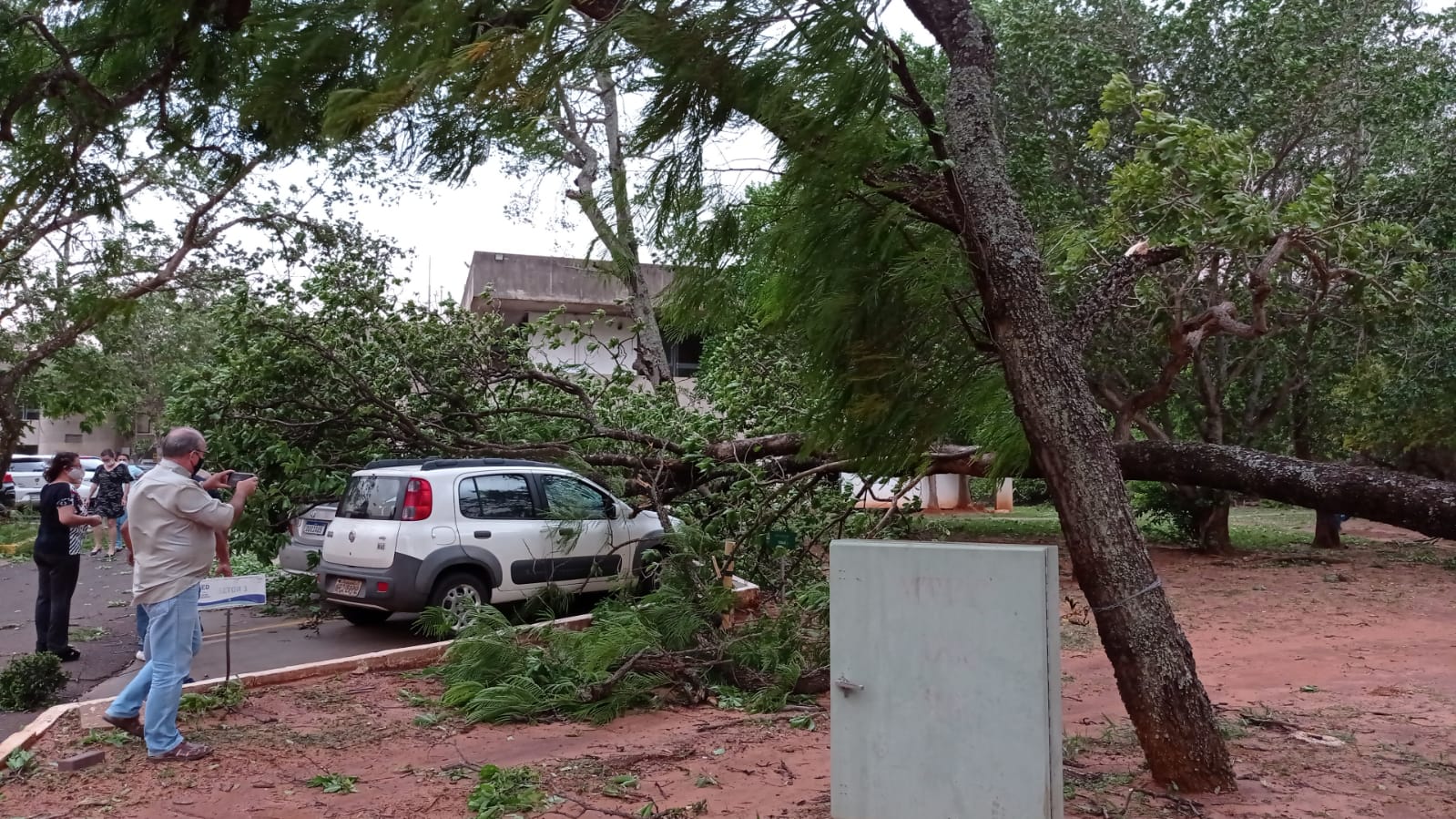 Já os servidores do Parque dos Poderes tiveram prejuízo só com a ventania, que fez com que árvores caíssem em cima de veículos estacionados em diversas secretarias do complexo governamental de MS. Os proprietários ainda tiveram tempo de ver o ocorrido antes da chega das chuvas de “terra e água”, que viram no horizonte ao saírem dos prédios. “O céu no horizonte já estava encoberto pela nuvem de terra e vimos chegando a região do Parque dos Poderes, sob nossas cabeças ante que tínhamos sido atingidos por vendaval“, relatou um servidor público que não quis ser identificado.