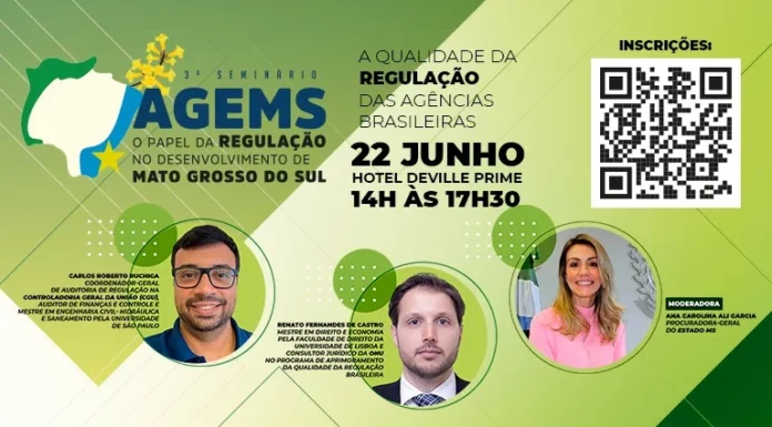 A Agência Estadual de Regulação de Serviços Públicos de Mato Grosso do Sul (AGEMS), traz a Campo Grande, o Consultor Jurídico da ONU (Organização das Nações Unidas), Renato Fernandes de Castro, em mais um seminário inédito de regulação e desenvolvimento do Estado com o tema “A Qualidade da Regulação das Agências Brasileiras”.