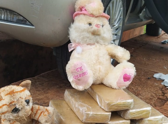 Carga de cocaína é apreendida em bichos de pelúcia e porta de veículo