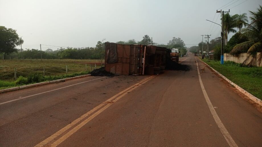 De acordo com a imprensa local, o veículo estava carregado de carvão quando o motorista, não identificado, acabou perdendo o controle da direção e tombou.