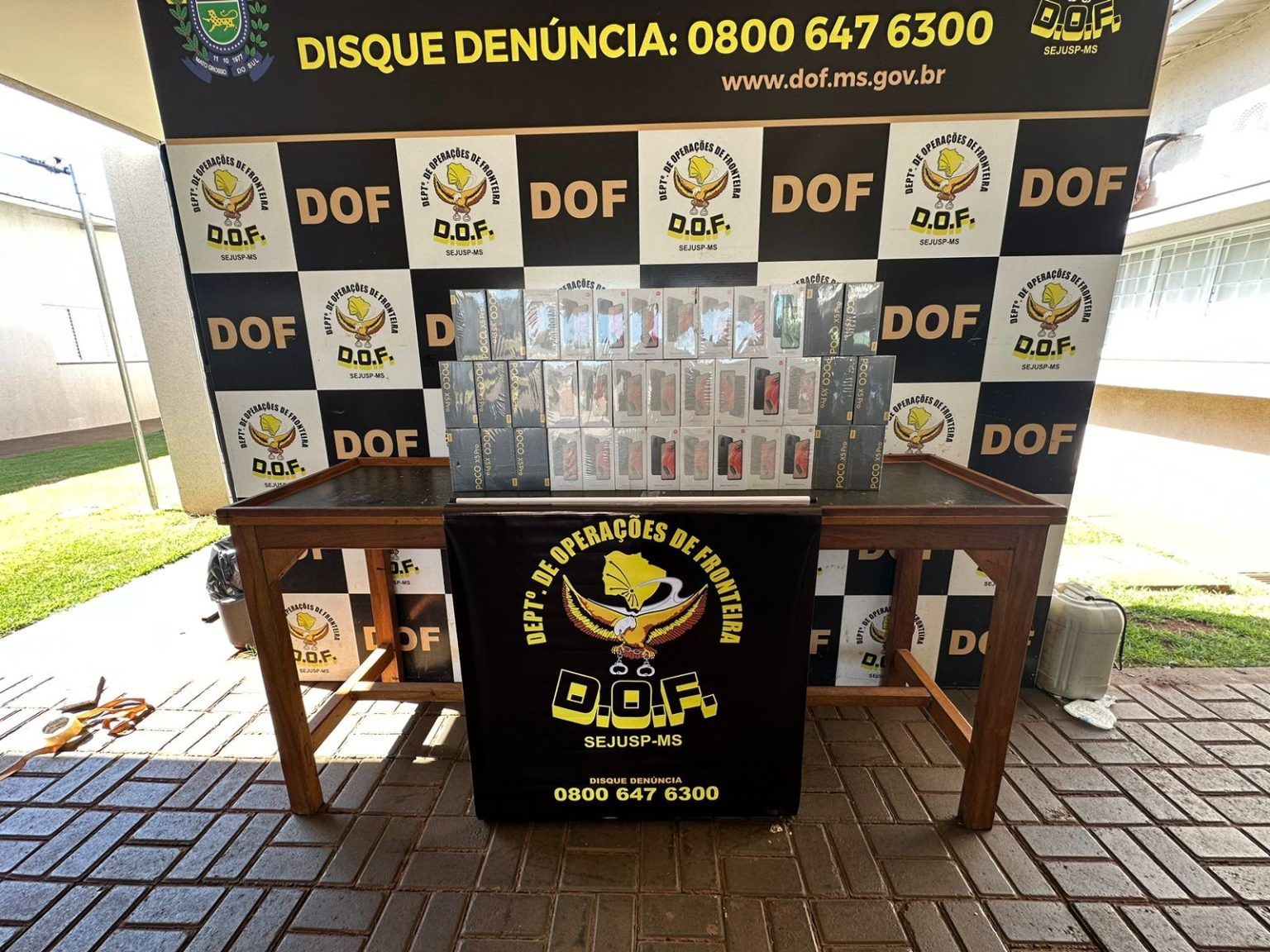 Um carregamento com 38 smartphones contrabandeados foi apreendido pelo Departamento de Operações de Fronteira (DOF) nessa segunda-feira (29) em Laguna Carapã.
