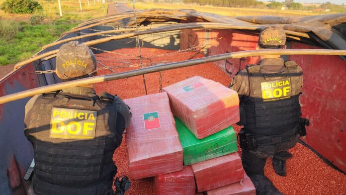 Com a suspeita de alguma irregularidade, os policiais foram verificar a carga nos semirreboques, encontrando vários fardos de drogas.