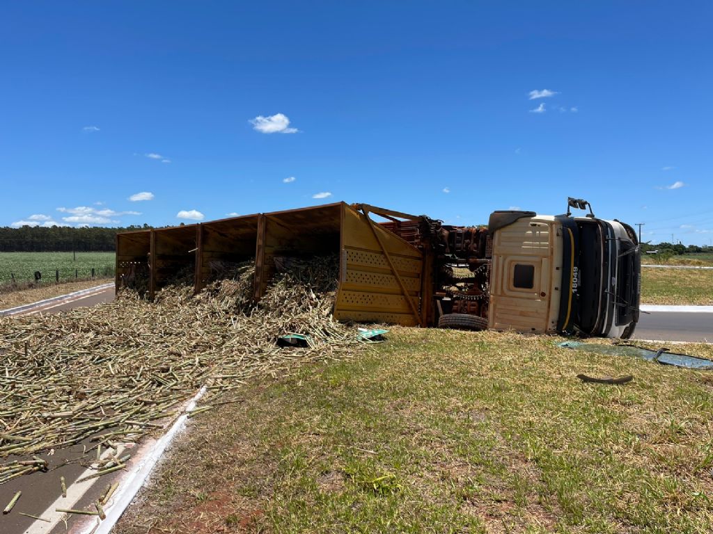 Uma carreta tombou na manhã desta quinta-feira (22) na rodovia estadual MS-473, em Nova Andradina. De acordo com o site local, Jornal da Nova, o veículo estava transportando uma carga de cana-de-açúcar.