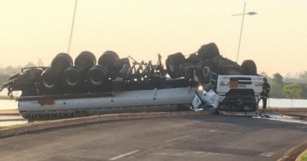 O caminhão que transportava combustível tombou e quebrou, espalhando o liquido no asfalto. Assim, o combustível, que era transportado escorreu pelo asfalto e o Corpo de Bombeiros foi acionado para evitar um incêndio. Ontem, o tráfego de veículos foi interditado por causa do risco de explosão.