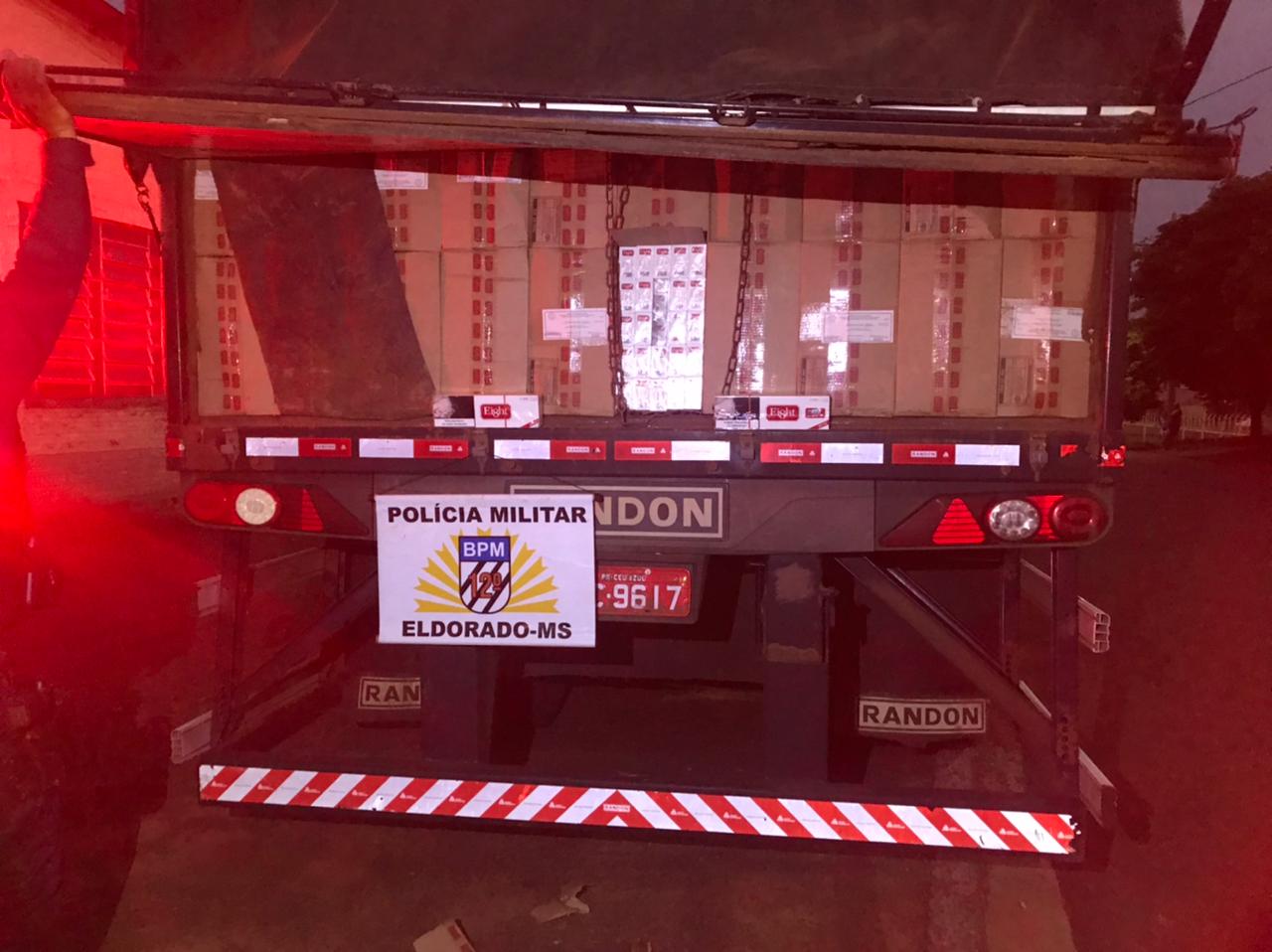 A Polícia Militar (PM) apreendeu uma carreta roubada que estava com aproximadamente 900 caixas de cigarros contrabandeado, no final da tarde de ontem (26) em Eldorado, região sul do Estado.
