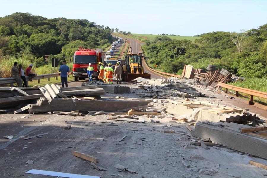 A dinâmica exata ainda não foi confirmada pela Polícia Rodoviária Federal (PRF). A carreta com farelo tombou e ficou destruída, parando fora da pista, juntamente com a carreta que transportava telhas e que ficaram espalhadas sobre a pista.