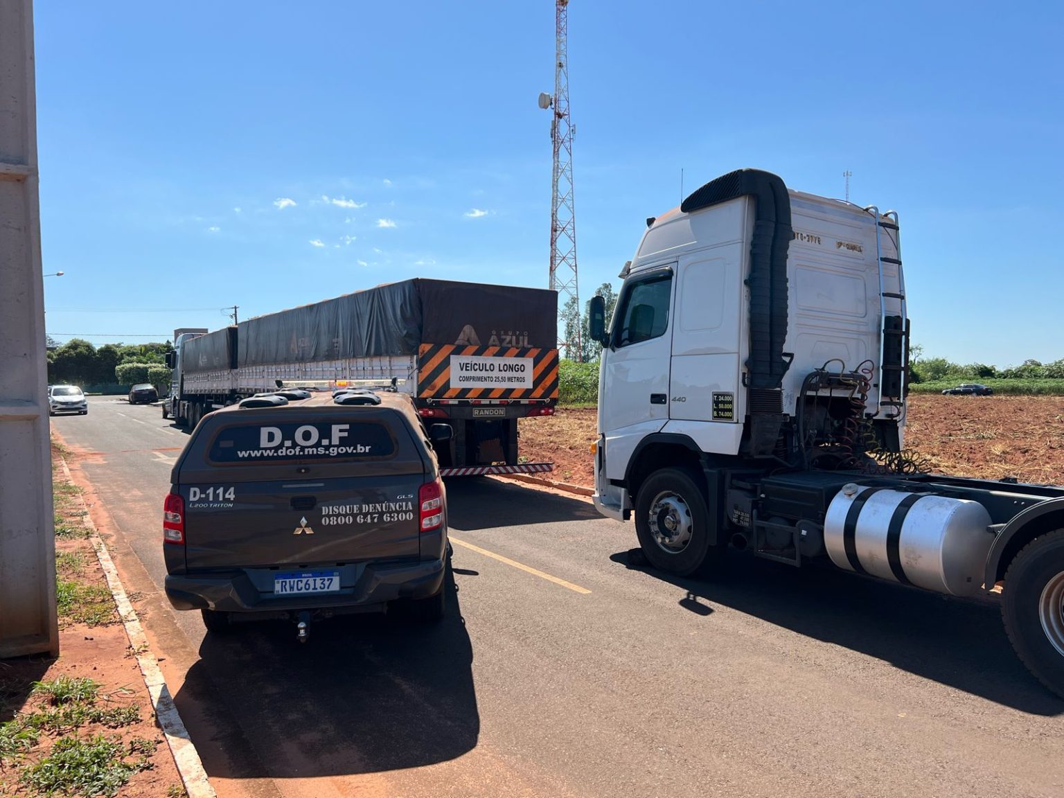 A ocorrência descreve que a equipe fazia a fiscalização nas proximidades da linha internacional de fronteira com o Paraguai quando viu duas carretas, modelos Volvo FH 440 e Mercedes-Benz, seguindo em comboio.