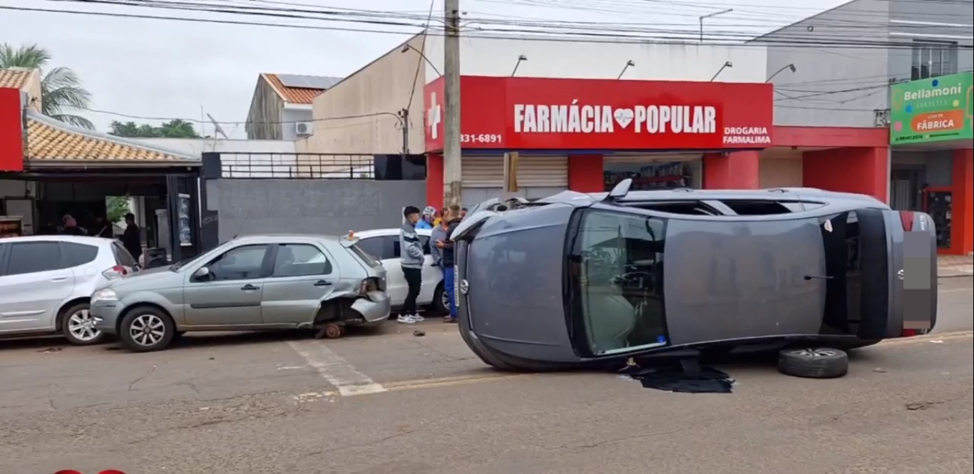 Um veículo capotou ao se chocar com outro na manhã desse sábado (25), em Campo Grande. O acidente pode ter sido provocado por uma distração da motorista responsável pela batida.
