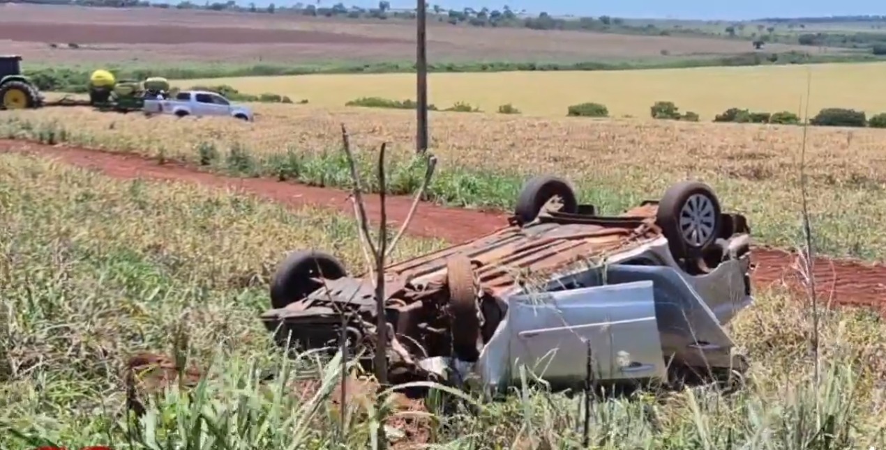 Um veículo Hyundai HB20 capotou na manhã dessa sexta-feira (21) na rodovia federal BR-262, próximo ao Assentamento Estrela, em Campo Grande.