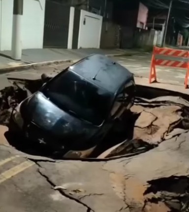 Um veículo acabou caindo em uma cratera gigantesca que se abriu em uma rua na cidade de Coxim. O município já está sob os efeitos do decreto de Situação de Emergência justamente para buscar recursos extras a fim de iniciar os reparos nos estragos deixados pelas chuvas deste início de fevereiro.