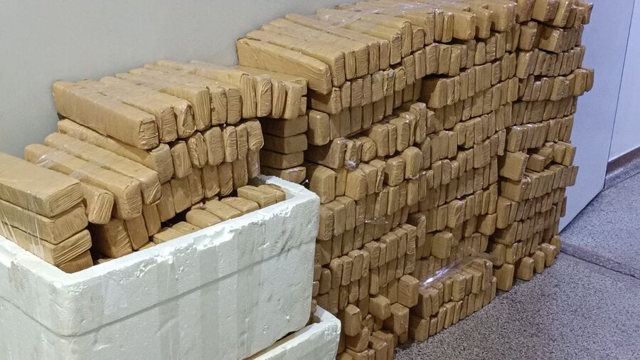 Em um cômodo, foram achados 1.032 tabletes de maconha, totalizando 721 quilos, 198 tabletes de cocaína, pesando 207 kg, e 218 tabletes de crack, somando 223 kg. Três veículos, sendo um Peugeot, Santana e Polo, foram estavam no local.