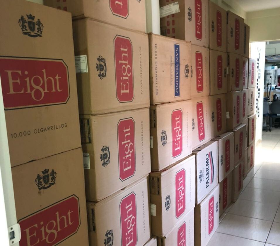 De acordo com o delegado, o material ilícito estava oculto entre caixas de bebidas. “No total foram apreendidos 18 mil maços de cigarros contrabandeados do Paraguai, das marcas Eigth, Palermo e San Marino“, registrou Silva.