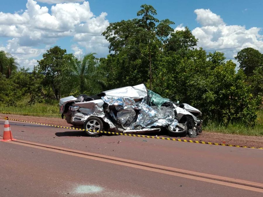Veículo de passeio ficou completamente destruído após a colisão (Fotos: Divulgação/Corpo de Bombeiros)