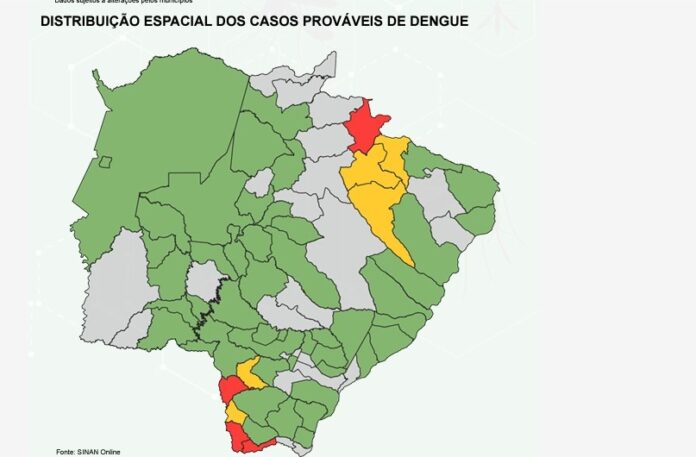Dessas localidades, quatro estão em vermelho, com alta incidência da doença – até a semana passada eram três – sendo elas: Aral Moreira, Paranhos, Sete Quedas e Costa Rica.