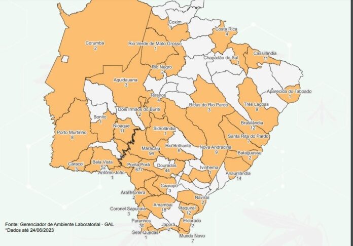 Entre as cidades, Ponta Porã contabiliza 677 casos confirmados da doença e lidera o ranking. São 12 cidades com alta incidência, ou seja, possuem mais de 300 casos prováveis para cada grupo de 100 mil habitantes. Em todo o Estado, 64 municípios registram ao menos um caso suspeito da doença. Maracaju e Guia Lopes são as cidades com maiores incidências nos últimos 14 dias.