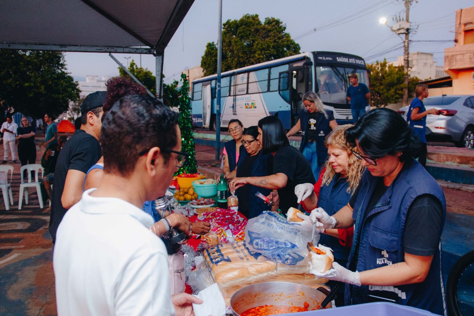 Em uma noite marcada por acolhimento, escuta e presença do poder público, a Prefeitura realizou nessa quarta-feira (17) a Ceia dos Invisíveis – Natal na Rua, uma ação intersetorial voltada à população em situação de rua, na Praça Aquidauana. A iniciativa reuniu cerca de 15 servidores e levou até quem mais precisa atendimentos de saúde, assistência social e um gesto simbólico de carinho: uma ceia natalina preparada com cuidado e respeito.