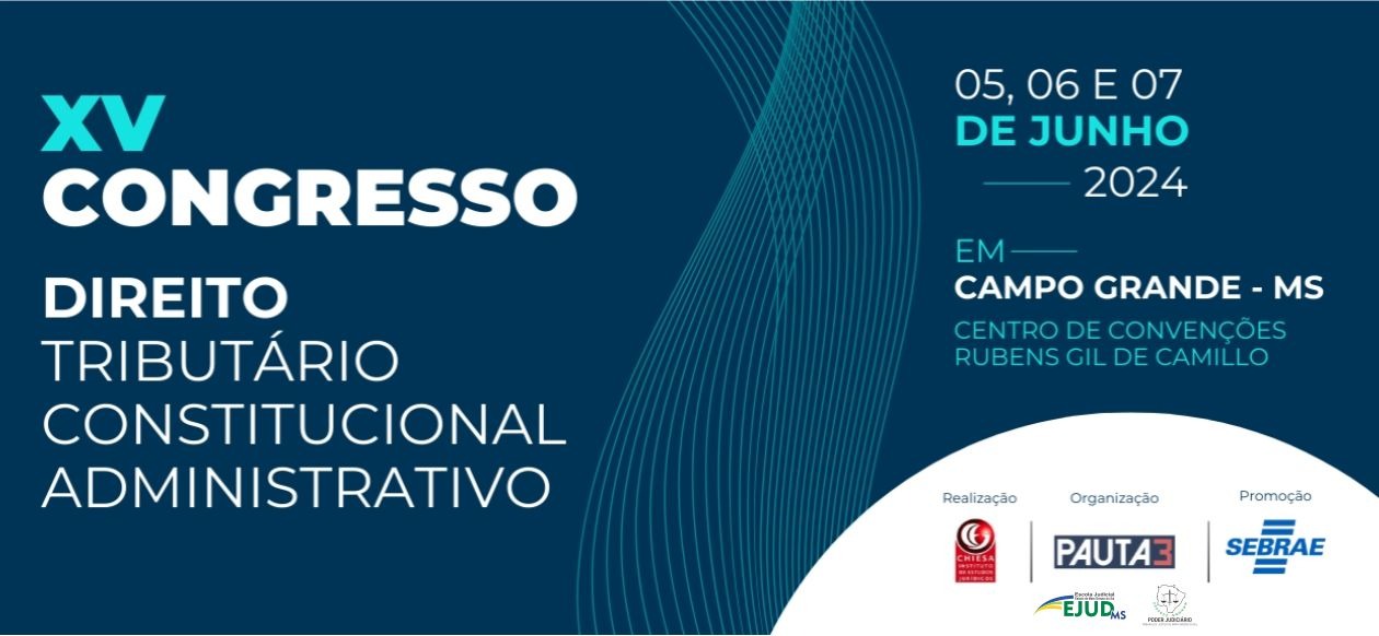 De 5 a 7 de junho, em parceria com o TJMS por meio da Escola Judicial (Ejud-MS), o Chiesa Instituto de Estudos Jurídicos realizará o XV Congresso de Direito Tributário, Constitucional e Administrativo, no Centro de Convenções Rubens Gil de Camilo, em Campo Grande.