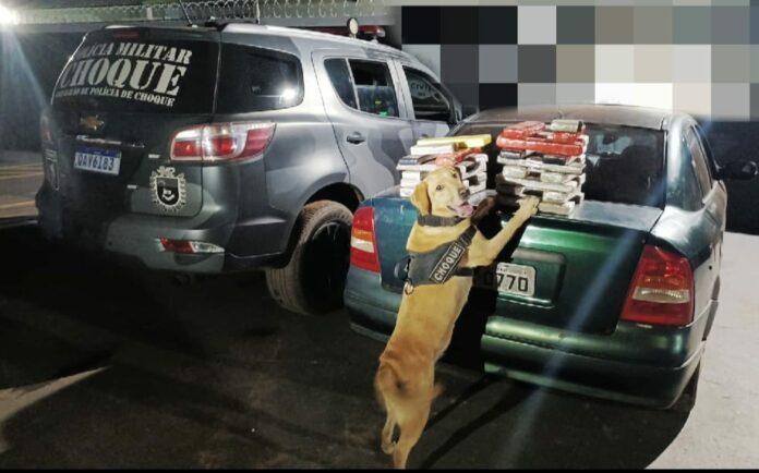 A equipe do Canil do Batalhão de Choque, conduzia rondas pela região do bairro Universitário quando flagrou o veículo de modelo Astra contendo cinco pessoas, trafegando em atitude suspeita pela via. A ordem de parada foi dada e o carro revistado, momento em que foi descoberto 29 tabletes de maconha armazenados no interior do veículo.