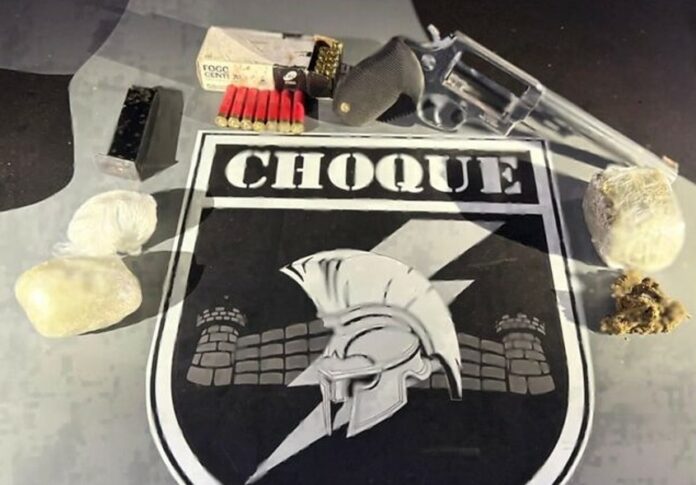 Uma ação do Batalhão de Choque da Polícia Militar resultou na apreensão de uma motocicleta roubada, drogas, munições e uma arma de fogo na tarde deste sábado (16), na Rua Haroldo Rondon, no Jardim Centenário, em Campo Grande. A operação foi desencadeada após informações de que um adolescente de 17 anos, evadido e com mandado de busca e apreensão, estaria escondido em uma residência do bairro.