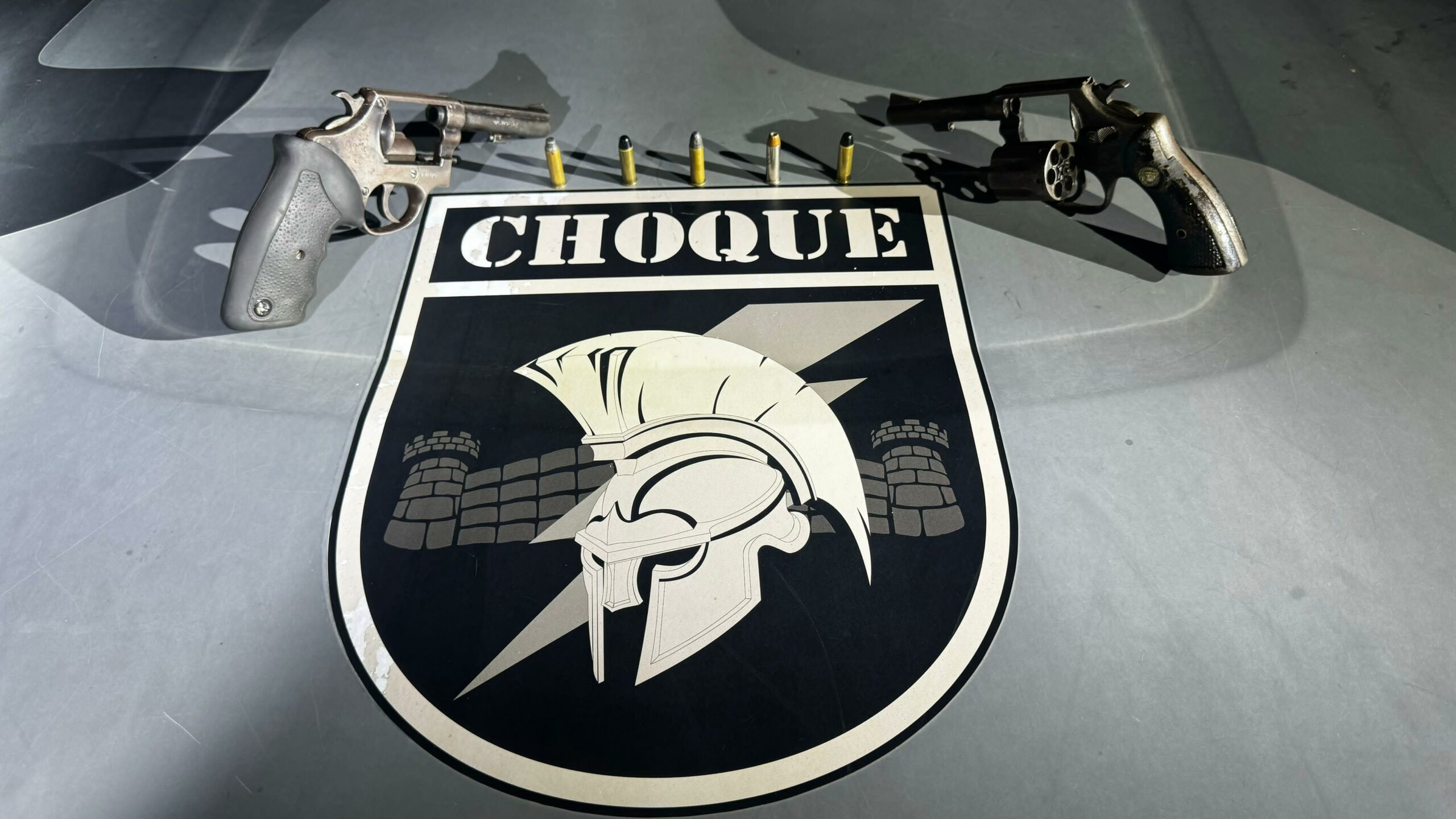 Conforme o balanço, na sexta-feira, no bairro Guanandi, dois revólveres calibre .38, de uso restrito, sendo um com a numeração parcialmente suprimida, e mais cinco munições intactas, foram apreendidos com um homem de 32 anos. Ele já tinha passagens por porte ilegal de arma de fogo.